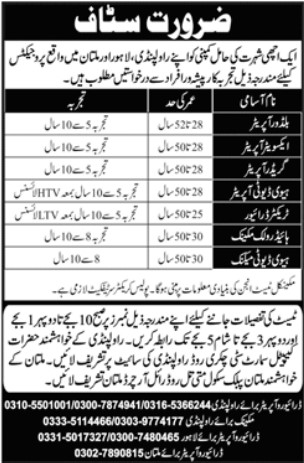 Candidates, if you are seeking Company Project Jobs 2025 in Lahore, Apply Now yes. Then it would help if you tried to complete this Company Project Jobs 2025 In Lahore Apply Now because here you can easily apply for these vacancies: Heavy Duty Mechanic, Hydrolick Mechanic, Tractor Driver, Grador Operator, and Exivator Operator.