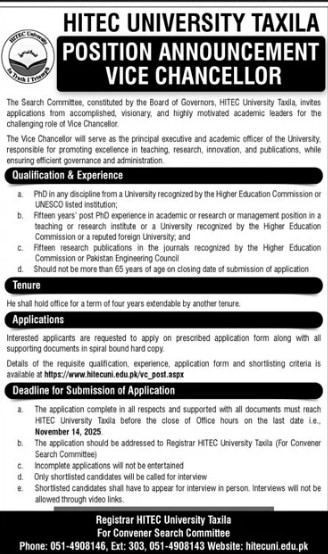 Candidates, if you are seeking HITEC University Taxila Jobs 2025, Apply Online yes. Then it would help if you tried to complete this HITEC University Taxila Jobs because here you can easily apply for this vacancy: Vice Chancellor.