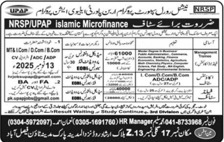 Candidates, if you are seeking NRSP/UPAP Islamic Microfinance Jobs in November 2025, yes. Then it would help if you tried to complete this NRSP/UPAP Islamic Microfinance Jobs because here you can easily apply for these vacancies: Management Trainee, Accounts Staff, and Field Staff.