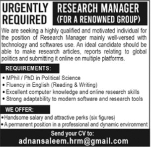 Both Male and Female candidates can apply for these Manager Jobs 2025 who have the Qualification: MPhil/PhD in Political Science, Fluency in English (Reading & Writing), Excellent computer knowledge and online research skills, Strong adaptability to modern software and research tools, and many more experienced candidates should apply within 7 days.